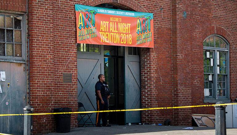 Police are unsure what sparked the shooting, but said they do not think the 24-hour Art All Night show in the Roebling Market in Trenton was the target. Authorities believe the two suspects got into a fight, which ended in a shootout.