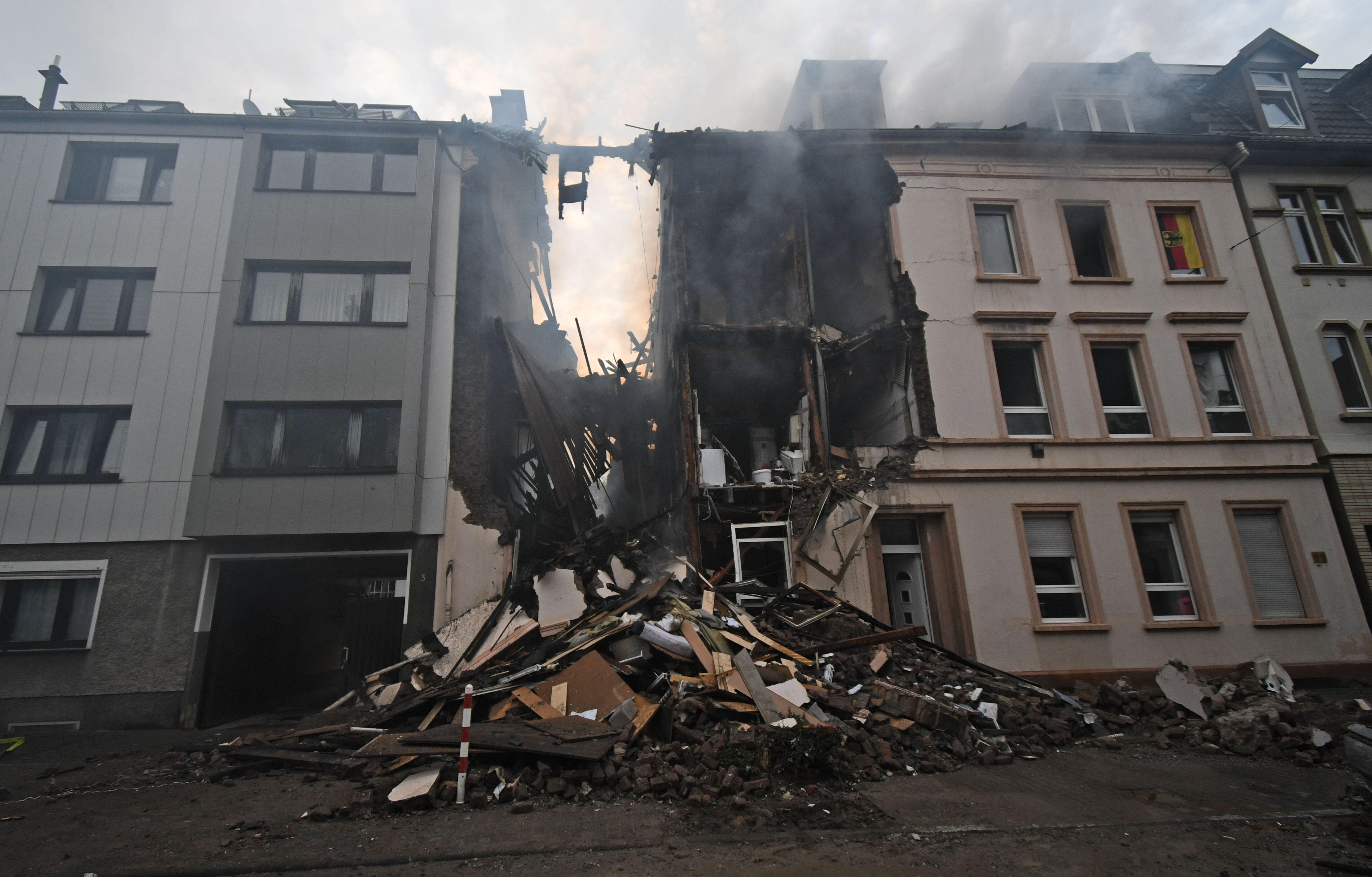 The explosion rocked the several-story building just after midnight local time, destroying the building's attic and top three floors the AP reports. The detonation also destroyed a car and caused a fire to break out in several different parts of the building. German news media said that firefighters were having trouble fighting the fire because part of the building kept collapsing.