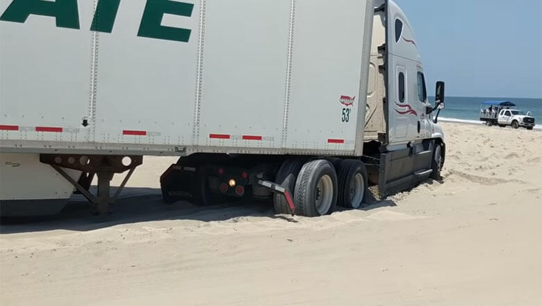Semi-Truck Gets Stuck On The Beach After Following Bad GPS Directions