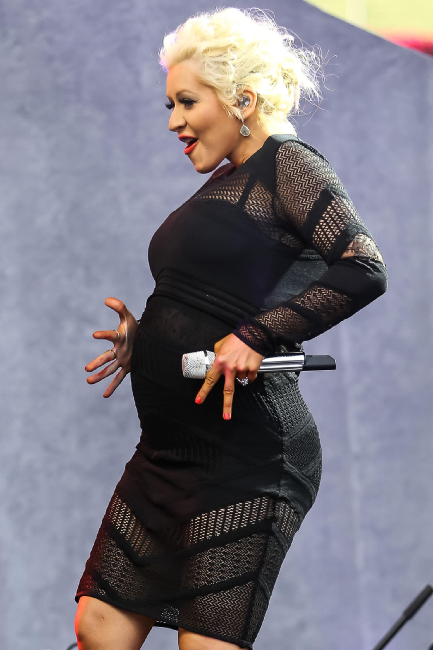 Christina Aguilera performed while pregnant at 102.7 KIIS FM's Wango Tango in 2014.