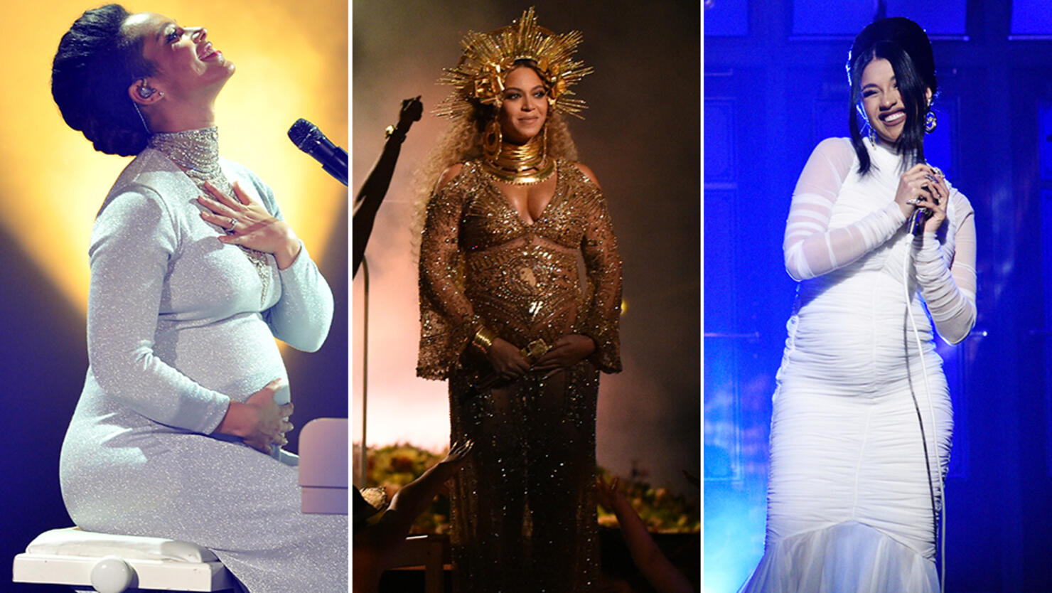 Months before she gave birth, Cardi B officially (finally!) confirmed her pregnancy during an appearance on “Saturday Night Live,” letting her burgeoning baby bump do the talking for her while she performed her single “Be Careful.” Doing so allowed Cardi to join a growing list of artists who have performed while pregnant, including M.I.A., Christina Aguilera, Jennifer Lopez, and more – not to mention Beyoncé, who not only announced her first pregnancy during an iconic performance of “Love On Top” during the MTV VMAs, but appeared pregnant onstage again for an unforgettable performance at the 2016 Grammys. Scroll on to see the rest!