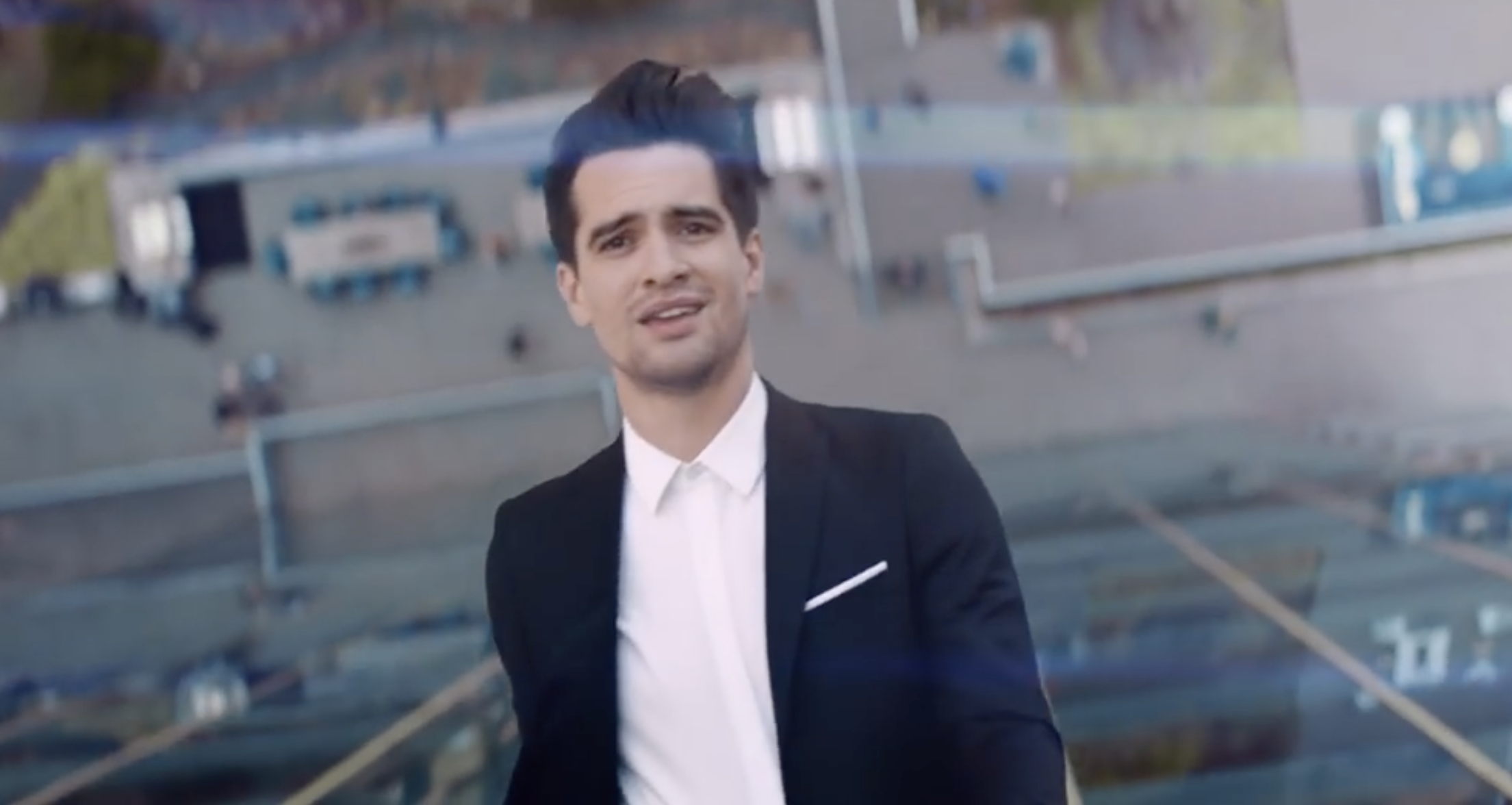 Panic! At The Disco's Brendan Urie took the phrase "high hopes" literally when recording the video for the band's latest single. The clip shows the singer getting out of a luxury Lyft in downtown Los Angeles and confidently walking up the side of a skyscraper while singing "Had to have high high hopes for a living / Didn’t know how but I always had a feeling / I was gonna be that one in a million / Always had high high hopes."