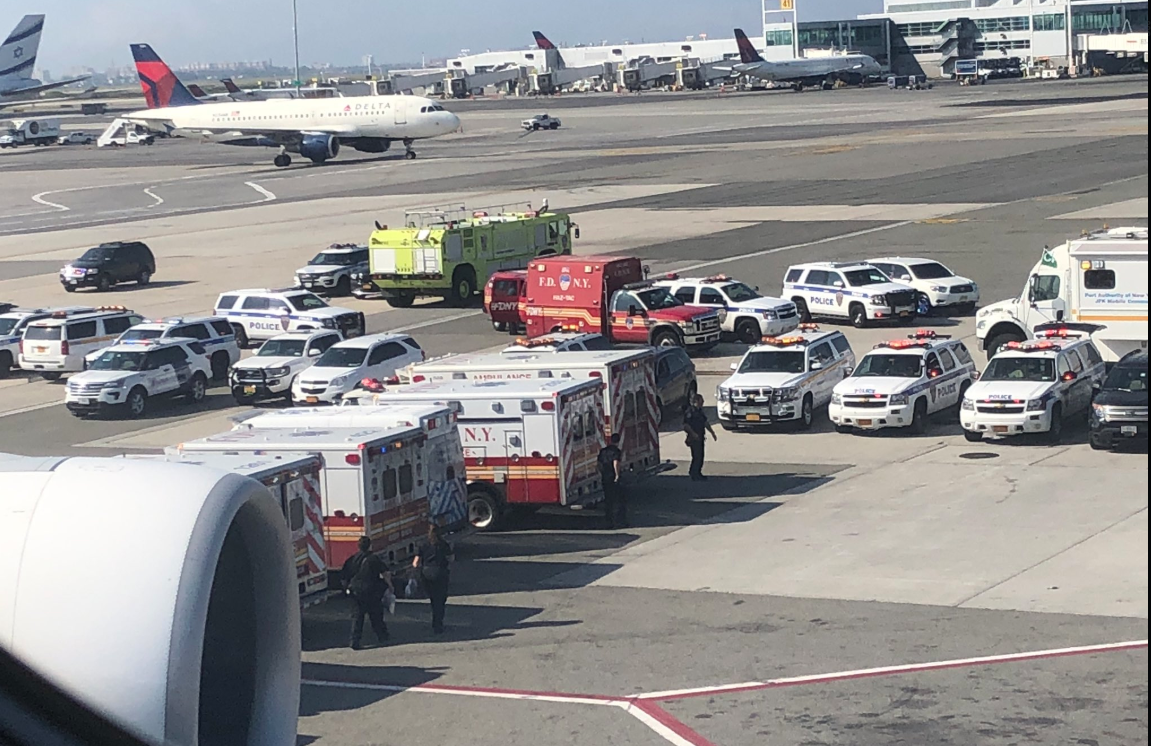 Police say Emirates flight 203 was headed for New York when about 100 passengers of the 500 on board reported feeling sick. Port Authority police and officials with the Centers for Disease Control and Prevention met the flight when it landed at JFK Wednesday morning around 9:10 a.m.