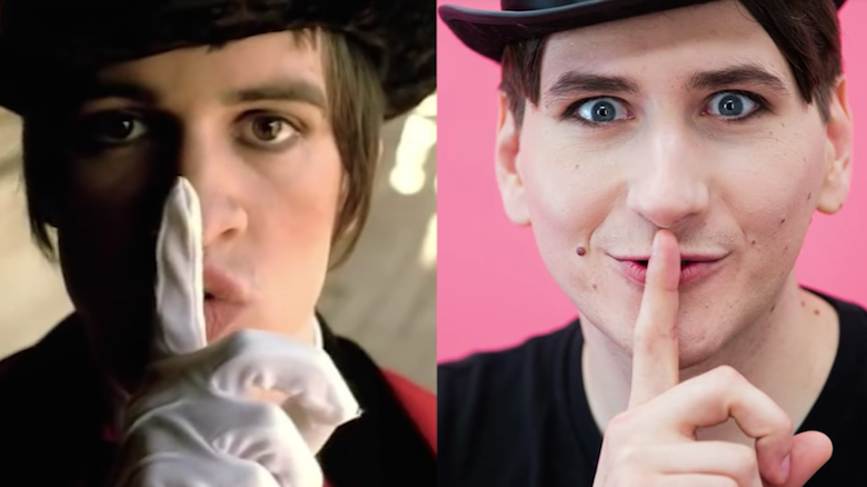 P!ATD frontman, Brendon Urie, has provided fans with so many amazing visuals to go along with his music over the course of his career, going all the way back to the band's early years. One of the most memorable music videos for any Panic! fan is for their hit "I Write Sins Not Tragedies," in which Brendon rocks one of his iconic looks — a top hat, tuxedo jacket, white globes, and of course, guy-liner.