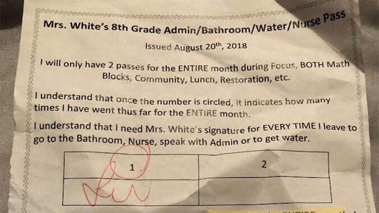 On the first day of class at Aspire Hanley Middle School, "Mrs. White" gave her students a pass which explained they would "only have 2 passes for the ENTIRE month" and must get it signed whenever they need "to go to the bathroom, nurse, speak with admin or to get water."