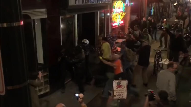 A "law and order" rally hosted by conservative group Patriot Prayer turned violent in downtown Portland, Oregon after counter-protesters from ANTIFA showed up. The two groups clashed in front of the popular bar Kelly's Olympian. After exchanging heated words, participants started throwing punches, but the melee quickly escalated, with combatants using batons and bear mace during the minute-long brawl. Riot police responded using pepper balls to break up the fight.