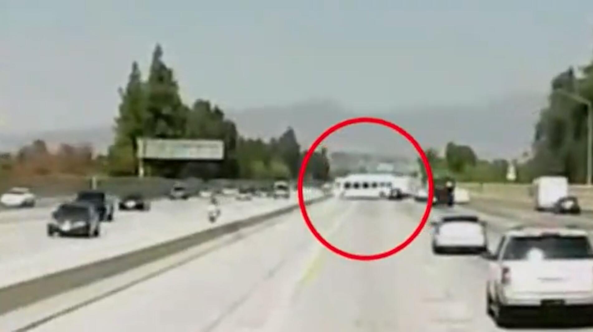 Dashcam Footage Shows Moment Bus Loses Control on California Freeway