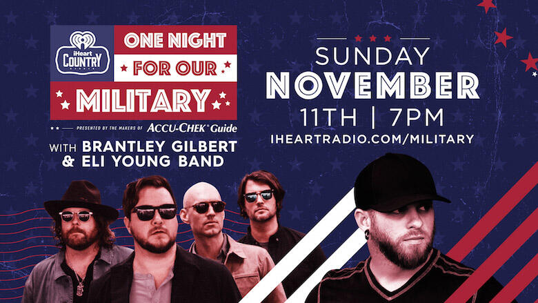 Fans can tune in free for a video stream of the exclusive iHeartCountry One Night For Our Military Presented By The Makers of Accu-Chek® Guide on Sunday, November 11th (Veterans Day), at 7pm local time via iHeartRadio.com/military.