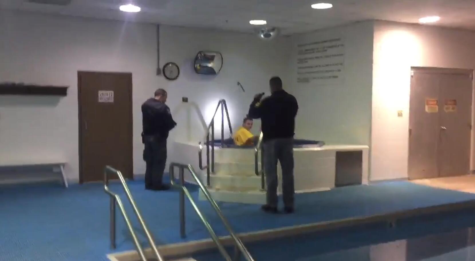 Body camera footage from the arrest show the officers approaching the woman, ordering her to get out of the hot tub. "Step out of the hot tub!"