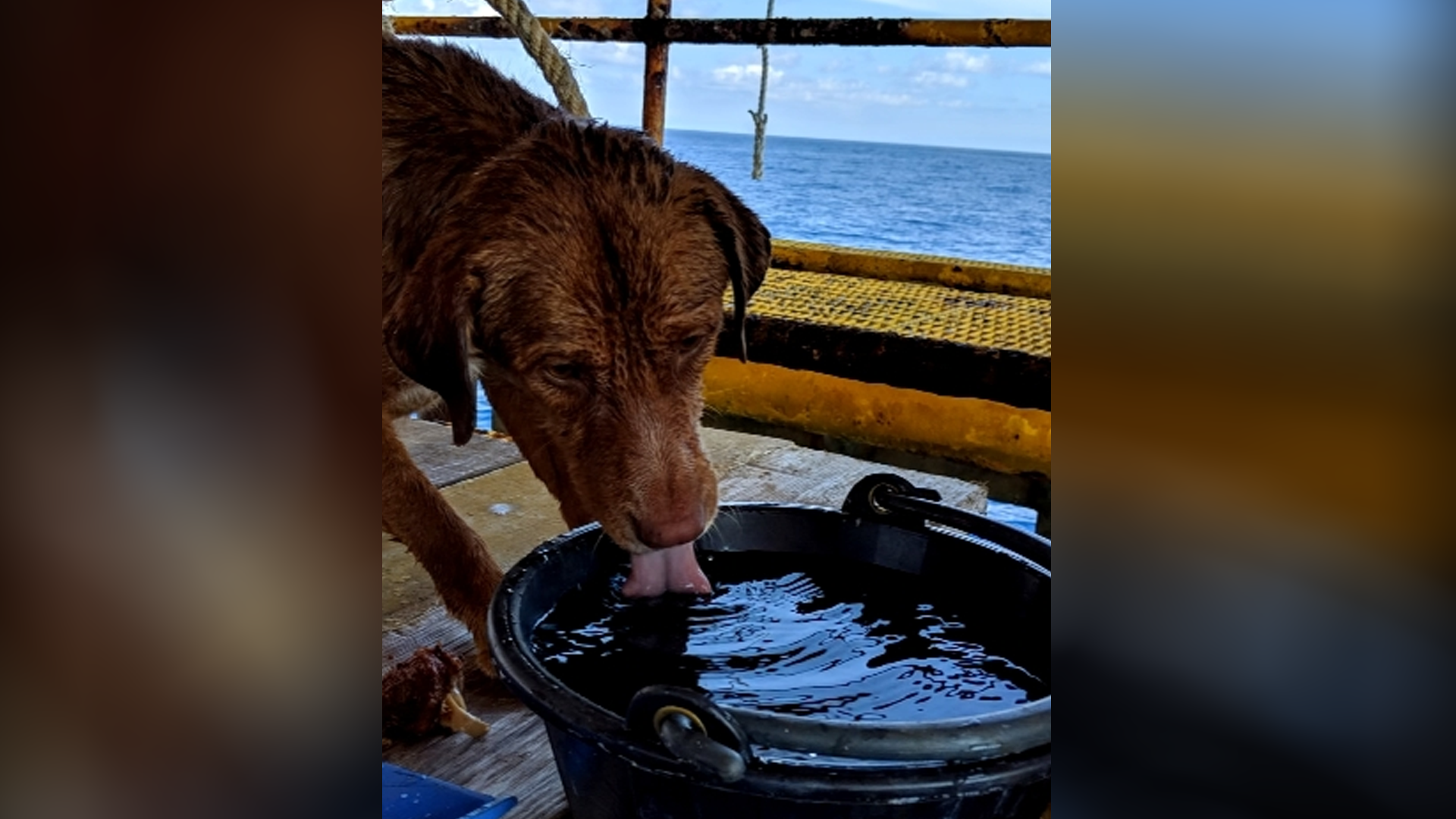 After some effort, the dog managed to make it to the platform where it clung to some support structures underneath the rig. The dog didn't bark or whimper once, Vitisak wrote on Facebook. Crew members attempted to help the dog by holding out a pole for the dog, but the waves made it difficult for the animal to climb up.