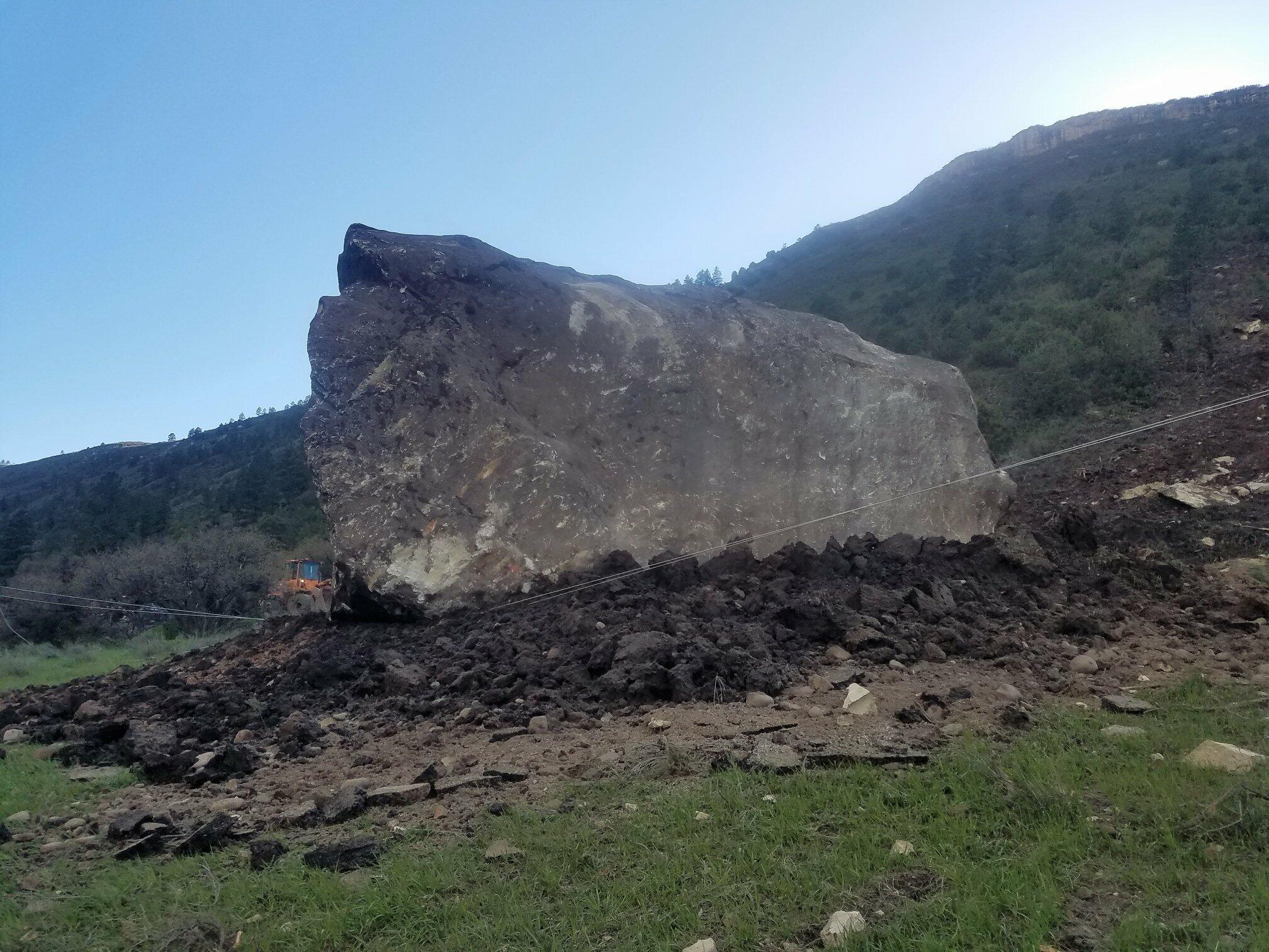 "A geo-technical team, equipment and supplies are being mobilized to the site, but it is not known when the road can be re-opened," the Colorado Department of Transportation wrote on Facebook. "A boulder, the size of a building, which remains embedded on the highway needs to be blasted into smaller pieces in order to move it off the roadway.