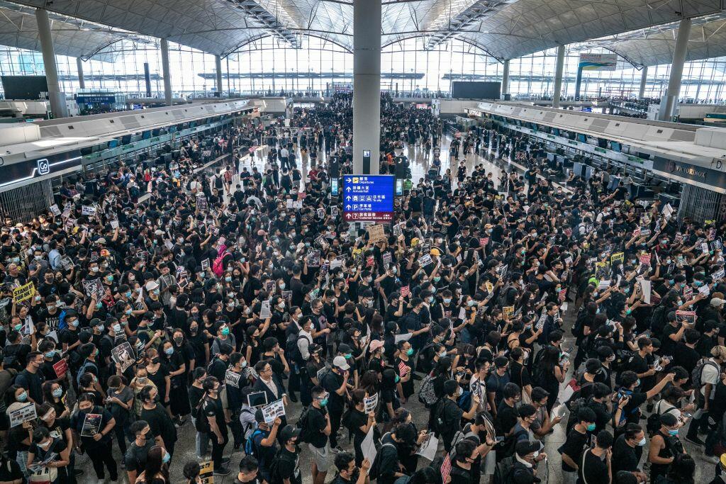 Hong Kong International Airport had to shut down all out-going flights after thousands of pro-democracy protesters staged a sit-in at one of the world's busiest airports as part of a mass protest for more autonomy from Beijing and an independent investigation into police behavior.