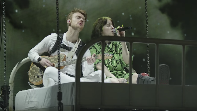 Last month, Billie Eilish wrapped up the North American leg of her WHEN WE ALL FALL ASLEEP, WHERE DO WE GO? world tour in her home state of California, including a show at the Greek Theater in her native Los Angeles. During the concert, she and her brother Finneas O'Connell performed the album's ballad "i love you" while laying together on a bed that gradually lifted and floated above the stage. A camera crew was there to capture the emotional moment, also panning out into the audience to film fans wiping tears from their eyes.