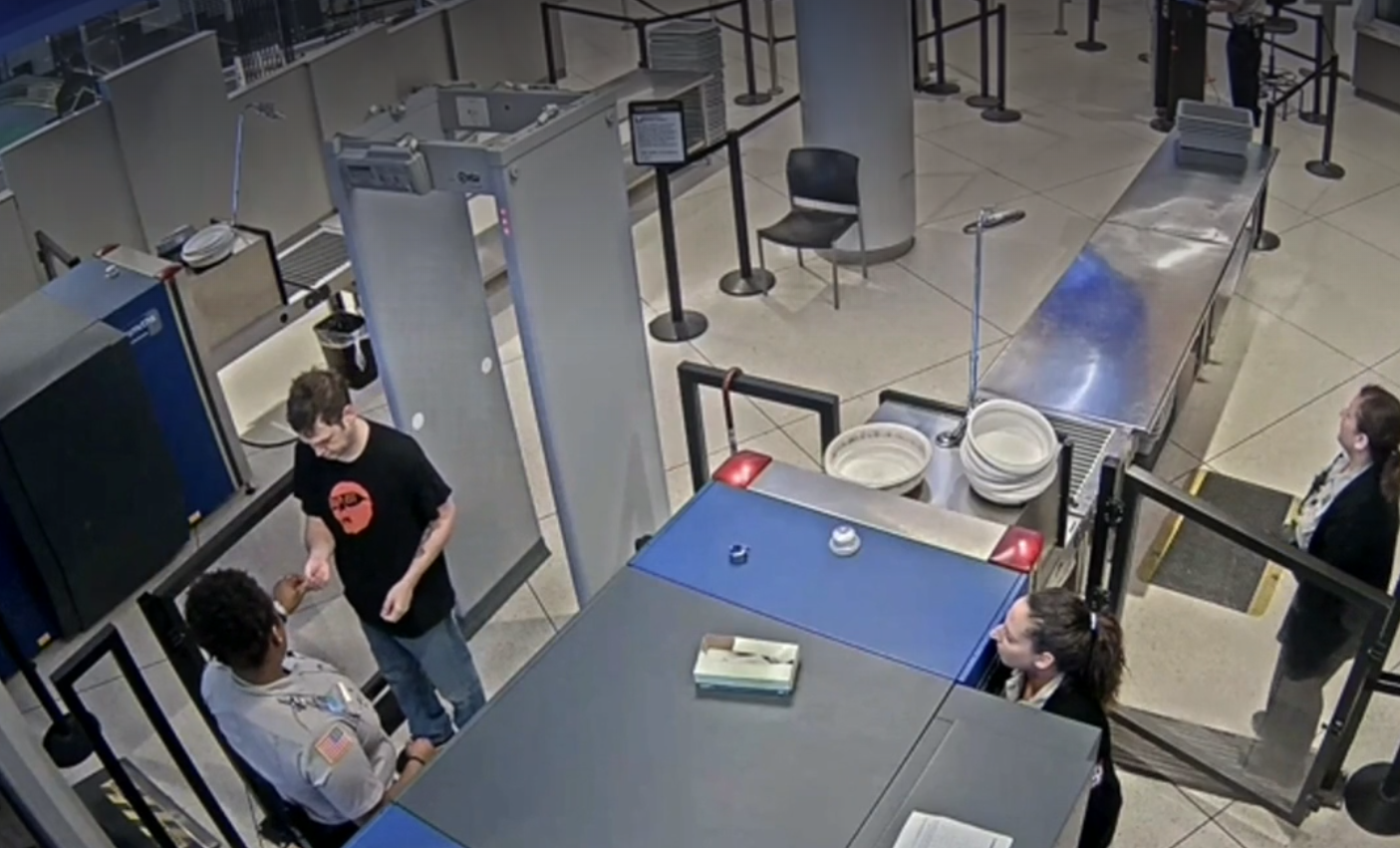 The incident was captured by the airport's security cameras. Strassner was able to request the footage through a Freedom of Information Act request.