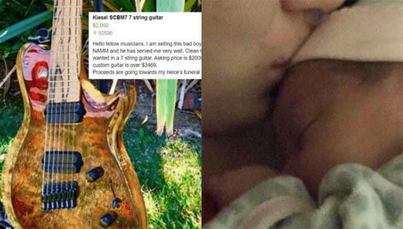 A man trying to help pay for his infant niece's funeral by selling a prized custom guitar was surprised this week with an outpouring of support from fellow musicians, determined to help the guitarist keep his dream instrument.