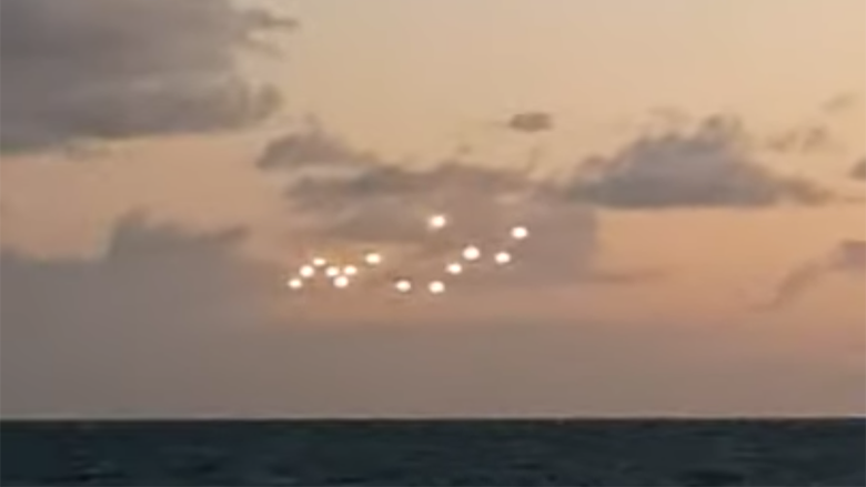 A man in North Carolina captured a group of strange lights in the sky on video, and it has a lot of people asking what they are. William Guy uploaded the footage to YouTube, titling his video "Real UFO Sighting." The video takes place on a boat and it shows the horizon during a beautiful sunset. William narrates saying, "Look, nothing in the sky, at all, then all of a sudden, BAM - what is that? Can anybody tell me what that is? We're in the middle of the ocean, on a ferry, nothing around. Look, nothing around, no land, no nothing."