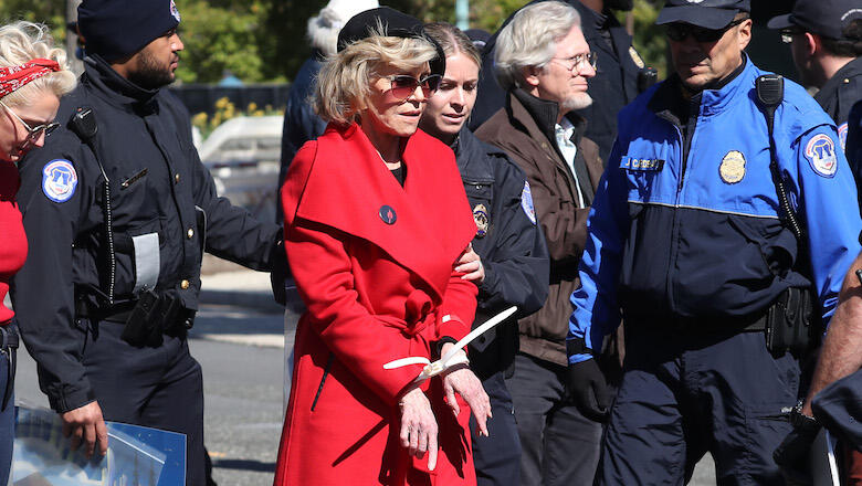On Friday (October 18), Fonda was detained during a protest over climate change in Washington, D.C., alongside Grace and Frankie costar Sam Waterston. According to The Hollywood Reporter, the stars were among 17 individuals detained by Capitol police yesterday for crowding, obstructing or incommoding, and unlawfully demonstrating.