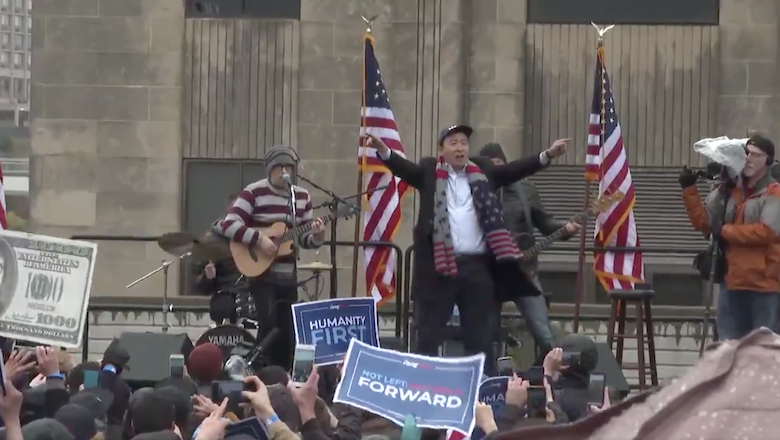 Weezer Performs 'Say It Ain't So' With Andrew Yang At Campaign Rally: Watch