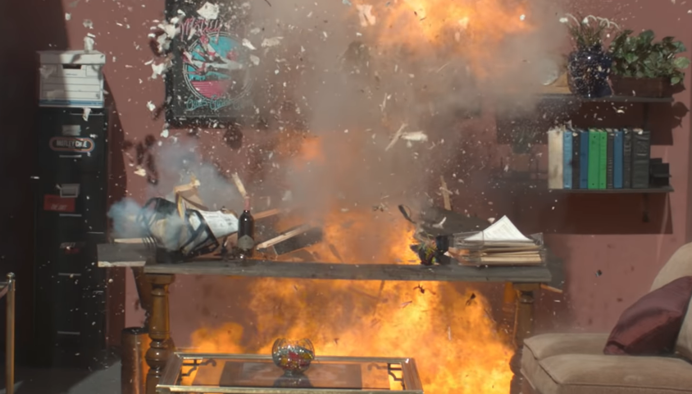 The video concludes with the contract being blown up in an empty office as "Kickstart My Heart" begins to play. You can check it out above or here.