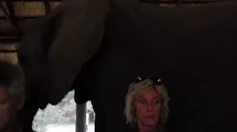 Since elephants can be deadly, the tourists had been told to stay still and not make any sudden moves, but one still filmed the memorable situation. Others were a little more concerned about what was going on with one man telling a traveling companion to shut up and scolding them for laughing. He told her that she was endangering them and that elephants can't see them unless they hear them or catch them moving, which isn't really true.