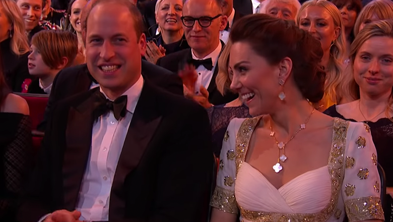 Brad saved the best joke for last, of course. Margot told the crowd: "He's gonna name this Harry, because he's really excited to about bringing it back to the states with him." The cameras then cut to William and Kate for their reactions. While William looked like the grimacing face emoji in a tux, Kate was actually laughing pretty hard. Before exiting the stage, Margot made sure to say the joke were "his words not mine."
