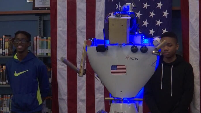 Bob was built as part of Project Lead the Way, a year-long event that promotes science, technology, engineering, and mathematics education. Over 170 students are involved in the program, and they make more than just robot hall monitors.