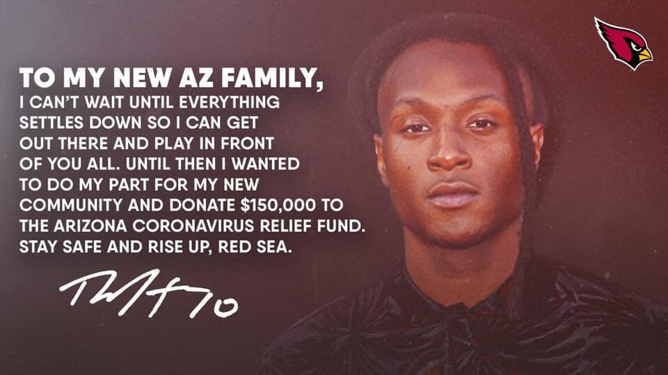 Arizona Cardinals wide receiver DeAndre Hopkins announced Friday he's donating $150,000 to the Arizona Coronavirus Relief Fund.