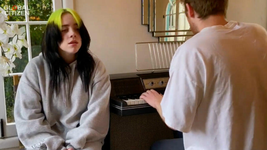 For her inclusion in the two-hour televised special, which was co-hosted by Jimmy Kimmel, Jimmy Fallon and Stephen Colbert, the chart-topper teamed up with her brother/right-hand producer FINNEAS to gift the world with a rendition of Bobby Hebb's 1963 jazz anthem "Sunny." "I love this song. It always warms my heart. It made me feel good. I wanted to make you guys feel good, so here we go," Eilish said before she kicked off the track. In typical Billie fashion, the star delivered some delicate vocals with FINNEAS on piano as she grooved to the melody.