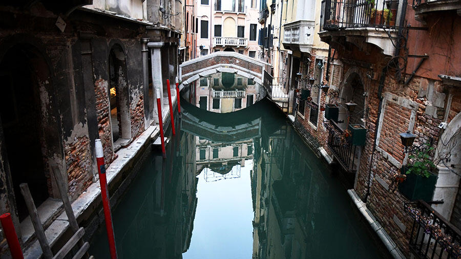 "Thanks to the exceptional calm of the canals of Venice due to the absence of boats, this sea lung jellyfish (Rhizostoma Pulmo) swam in the transparent waters near the bridge of Baretteri," he wrote. "It seemed to slip through the reflection of the buildings, incredibly motionless."