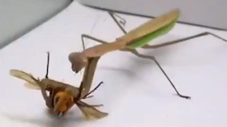 Praying Mantis Devours 'Murder Hornet' In Terrifying Video