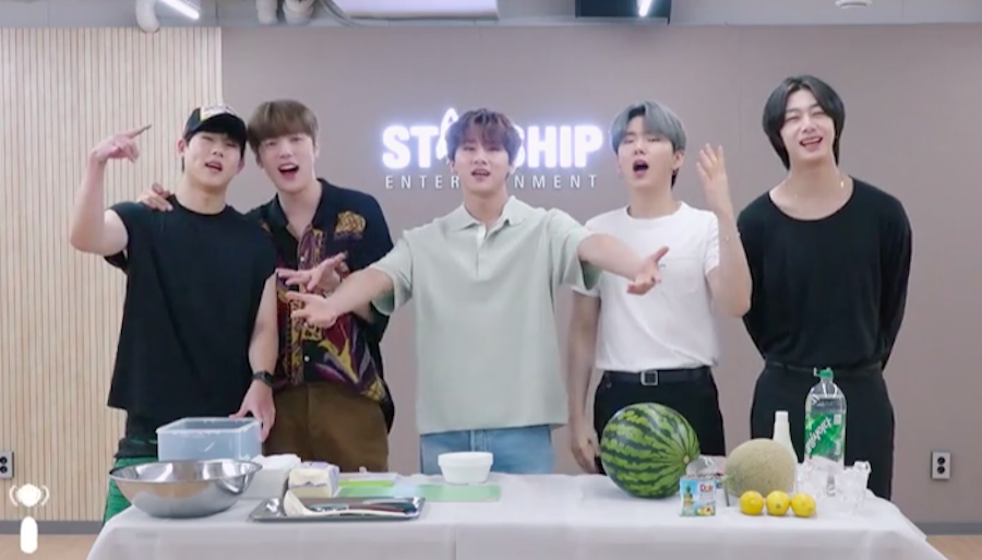 During the latest episode of iHeartRadio's "Summer Camp with the Stars," the band (minus Shownu, who recently had eye surgery) took on camp counselor duties as they showed fans how to make Subak-Hwachae, a Korean watermelon punch.