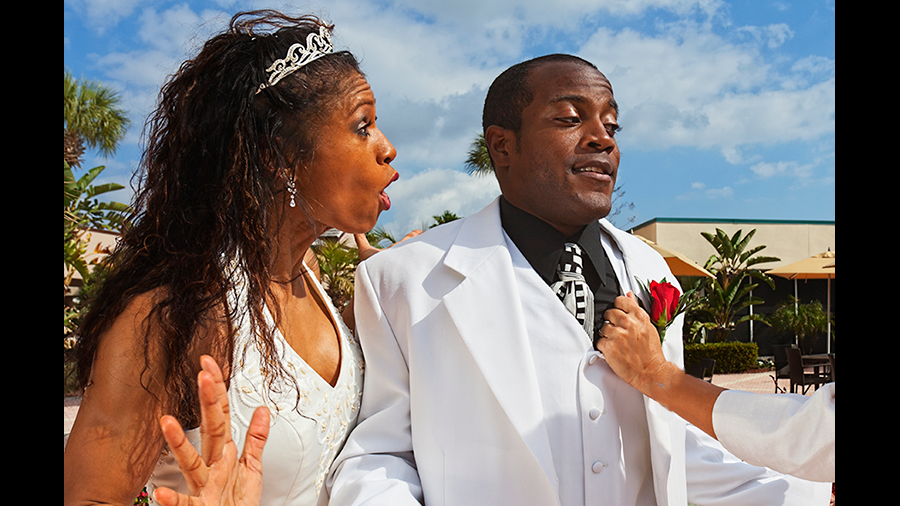 At that point, the bride confronts him and says, "If you did not want to come, you can leave. You shouldn't have come if you did not want us to get married!" The dad responds, "I'm sorry but I'm going to speak my piece whether you like it or not." She gets more upset, demanding that he leave, but all he says is, "While I'm talking to my son, don't interrupt me." She states she will interrupt him and then asks someone to escort the man out. At that point, things get physical - his son has had enough and as the bride bawls, guests are needed to separate the groom and his father. There is lots of screaming and the officiant repeatedly asks everyone to "take it outside," threatening to call the cops.