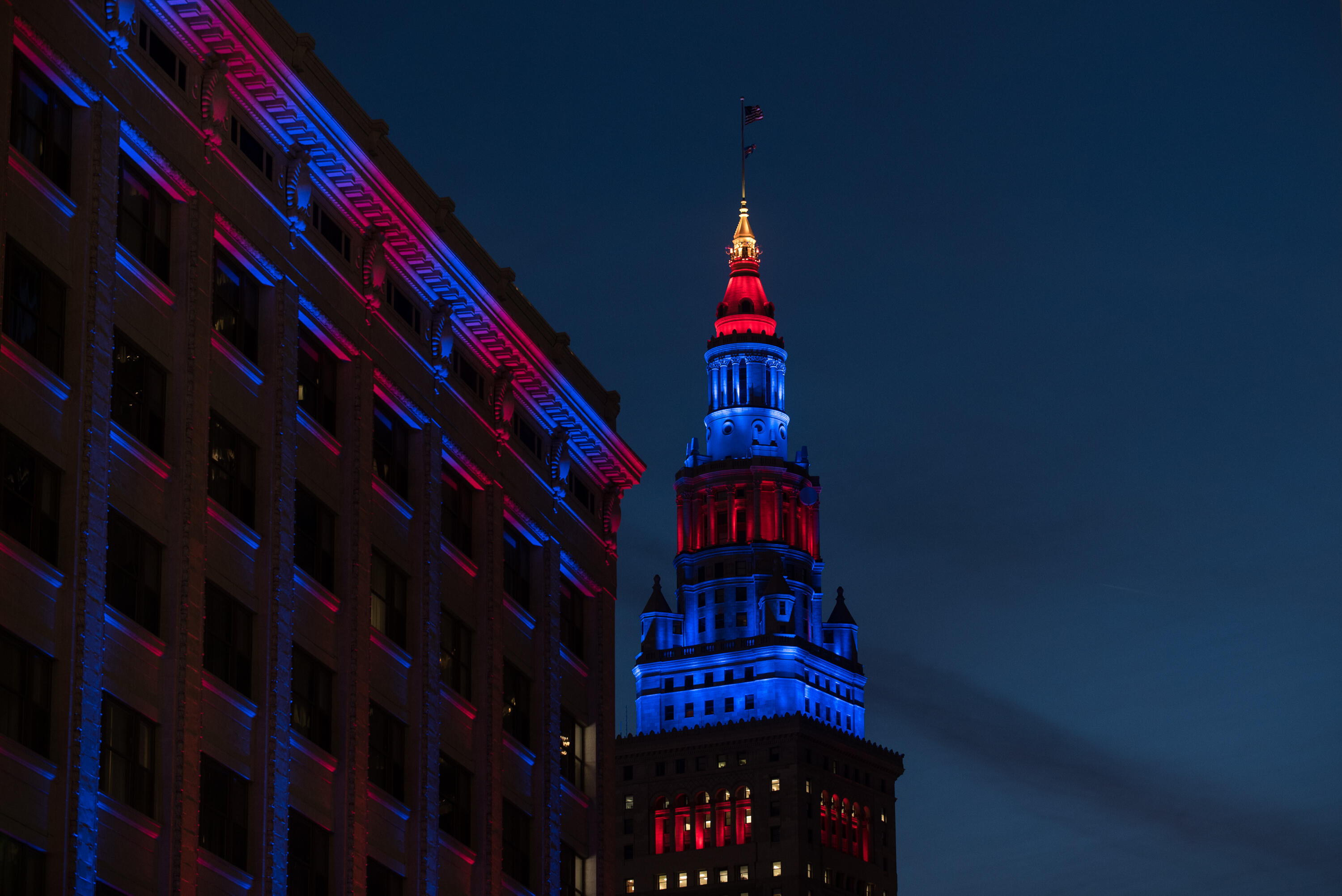 The United Steelworkers Union tweeted several photos of the Terminal Tower lighting project, tagging local journalists. The union also tweeted a photo of the Rock & Roll Hall of Fame and Museum with the same Biden-Harris light. The Rock Hall has not publicly responded to the political lighting project.