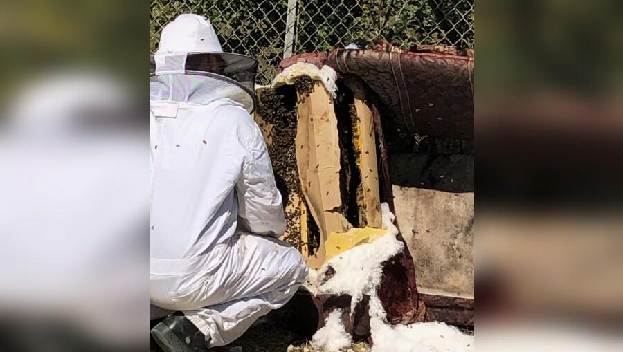Not An Average Work Day: Irving Firefighter Rescues Bee Hive In Dumped Sofa