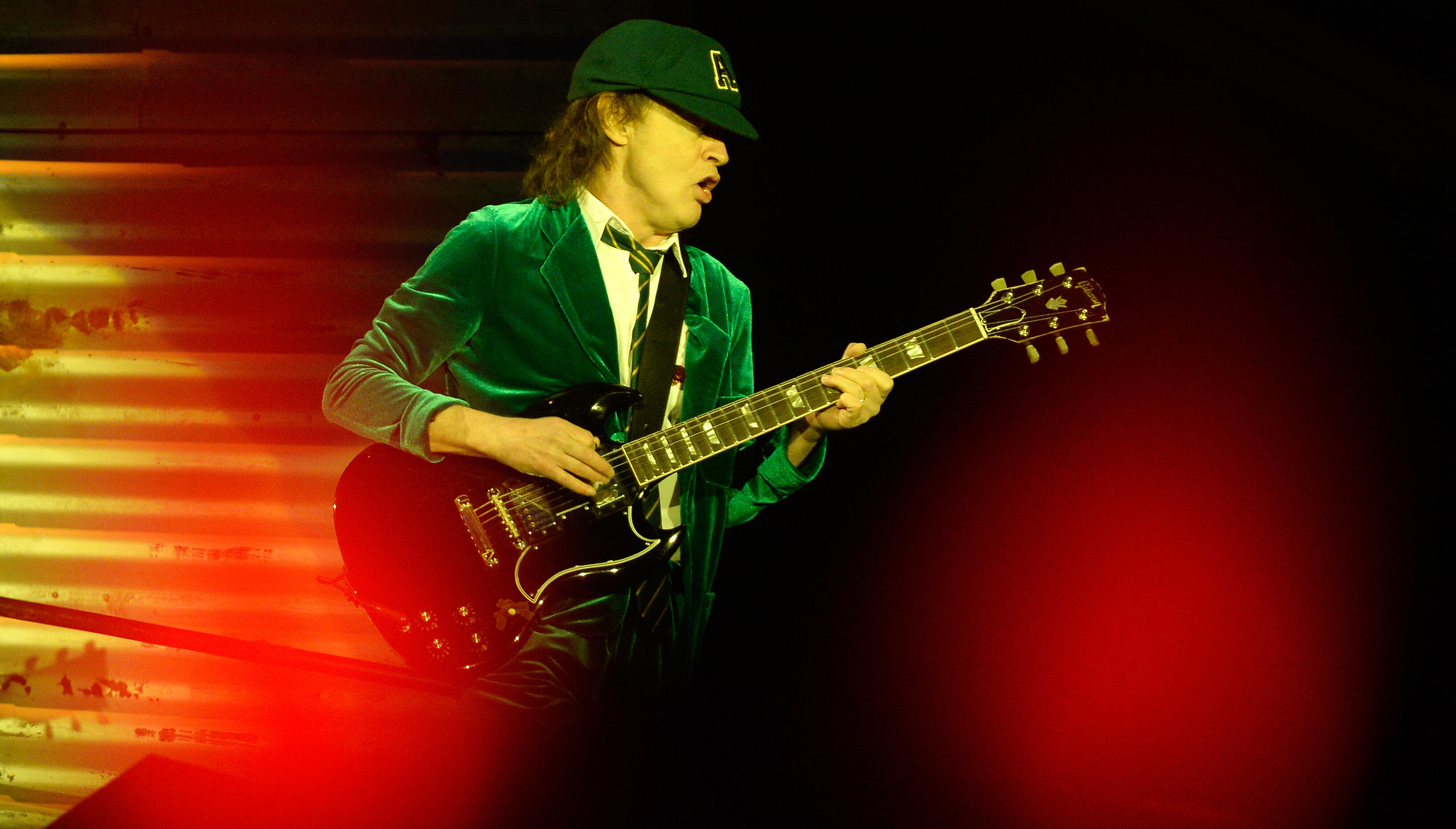 "The end of the guitar was so heavy that Angus was drooping like that, like he was [falling over]," the director recalled with a laugh.