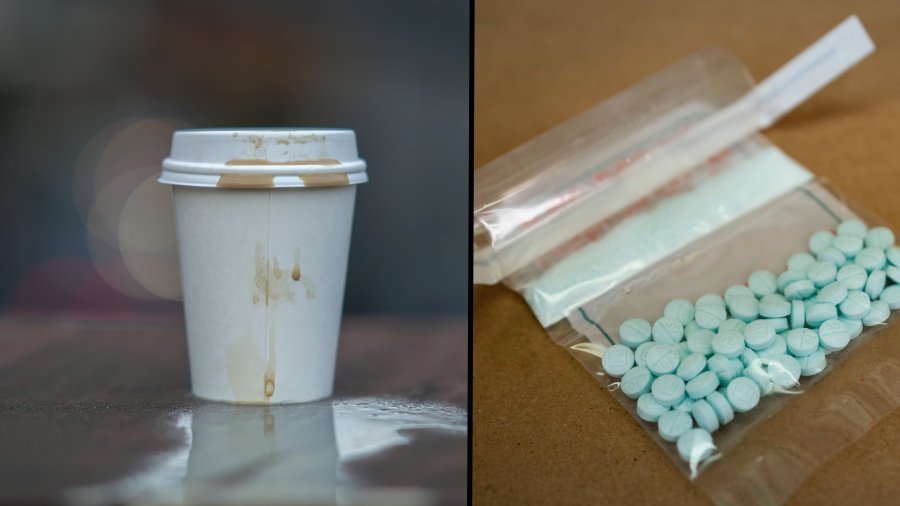 The K-9 unit had arrived and alerted the deputies to the odor of illicit narcotics inside of the vehicle. A store-bought cup of coffee was found during the search. When the coffee was poured out, deputies found a container of 30 fentanyl pills and a piece of foil with fentanyl residue.