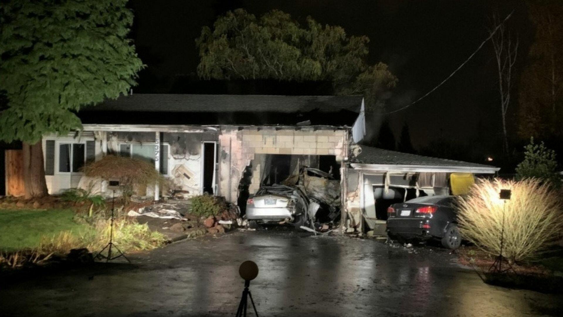 Reports said 23-year-old Andrez Velasquez, of Beaverton, was driving a silver 2009 Honda Accord. An unidentified 21-year-old woman was driving a black 2010 Lexus 250. Deputies said the woman crashed into the front of the house while Velasquez crashed into the home's garage. A fire started in the garage and quickly spread to the rest of the home, officials said.