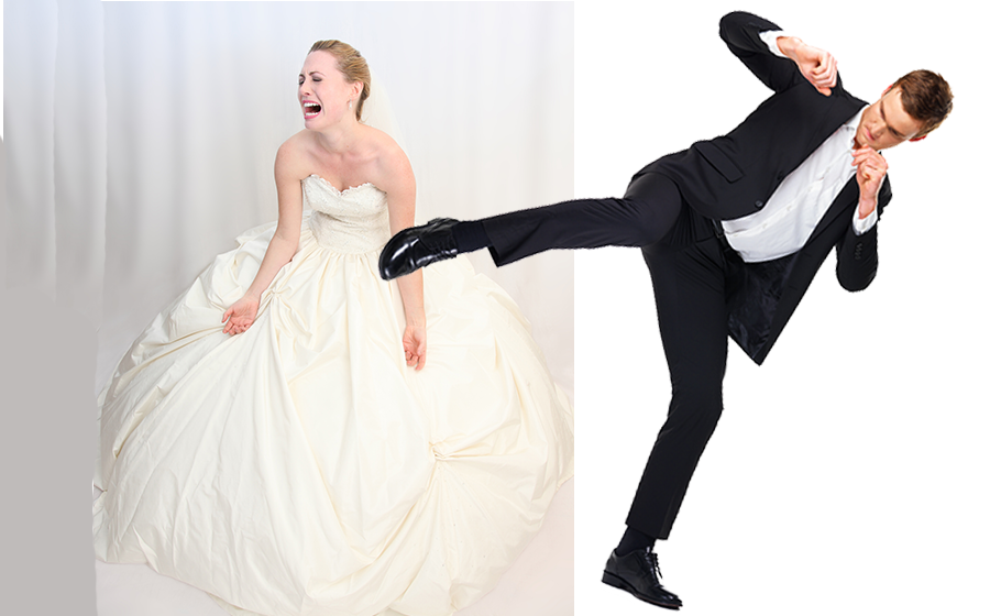 Something old, something new, something borrowed, something... bruised? That was the case for one bride who took a heel to the face while her shirtless husband playfully gave her a wedding day lap dance.
