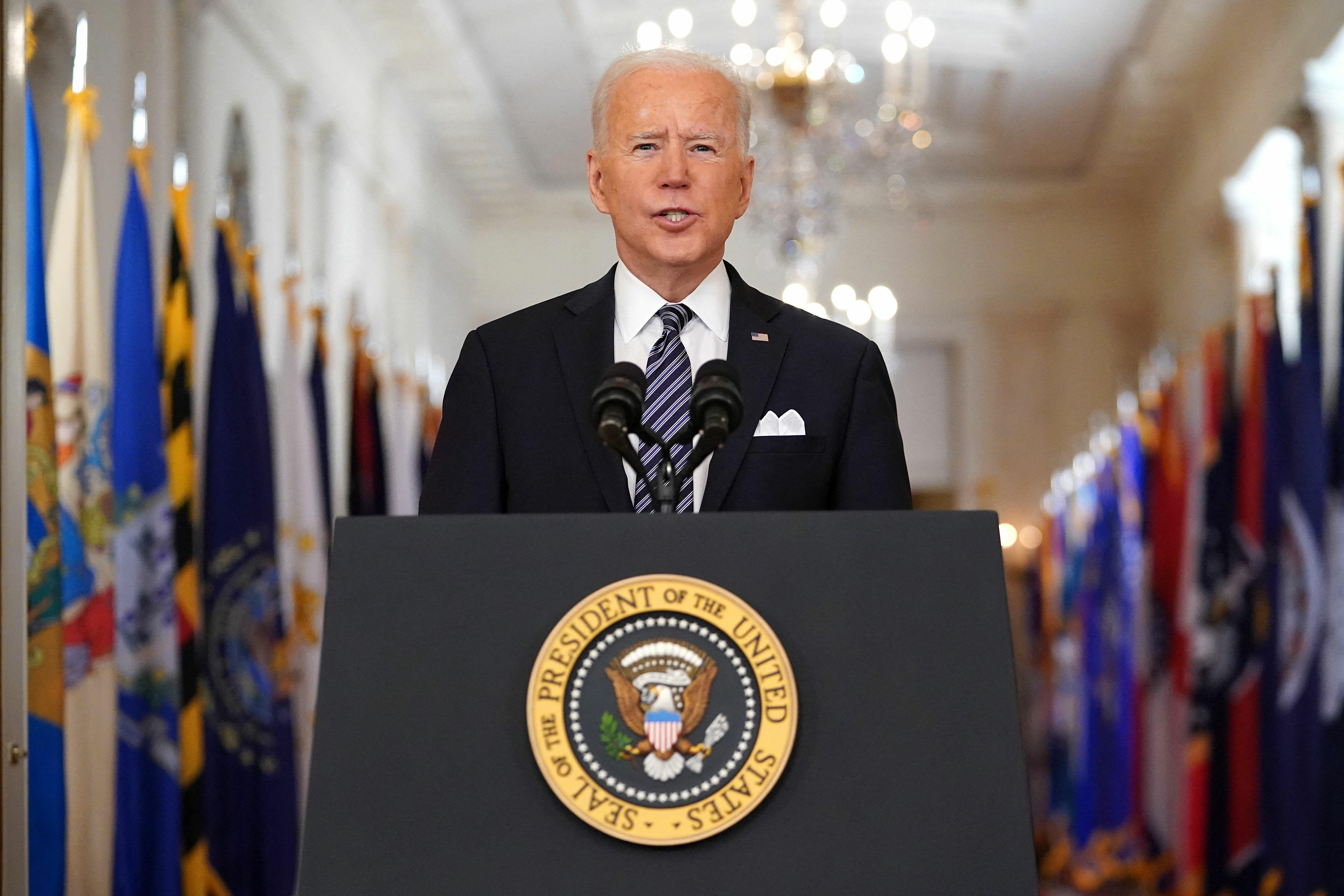 President Joe Biden addressed the nation in his first nationally televised primetime address from the White House on the anniversary of the coronavirus lockdowns.