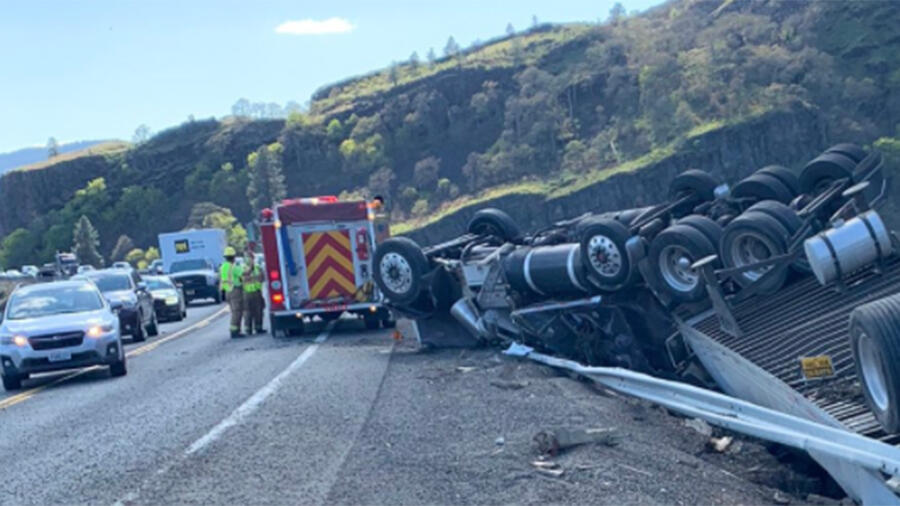 An 18-wheeler hauling cheese from Idaho to Oregon overturned after the driver was stung by a bee. Authorities said the truck was traveling through the Columbia River Gorge in Bingen, Washington, when the driver was stung and lost control of his semi-truck, colliding with the guardrail.