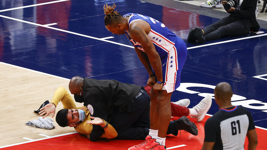 A man was tackled and apprehended after running on the court during the Philadelphia 76ers-Washington Wizards game on Monday (May 31) night, which served as the latest in a string of recent incidents involving bad behavior by fans during the NBA Playoffs.