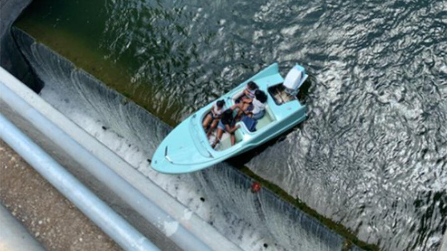 Austin-Travis County Emergency Medical Services responded with a gas-powered lake patrol boat and an emergency rescue helicopter. They lowered life vests to the women, who were teetering over the edge of the dam. The rescue workers then tied a line to the second stranded boat and managed to pull both boats to safety after about 15 minutes.