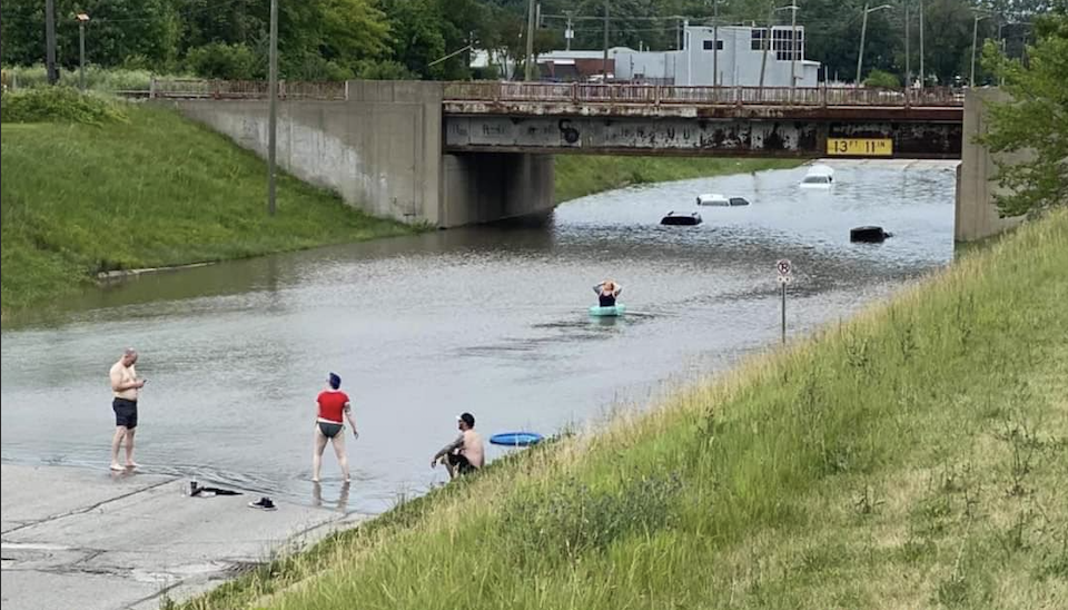 Areas around the state are flooded after this weekend's heavy rain, and some Michigan residents are using the submerged streets as an opportunity to go swimming, but police are warning everyone to steer clear from the water.