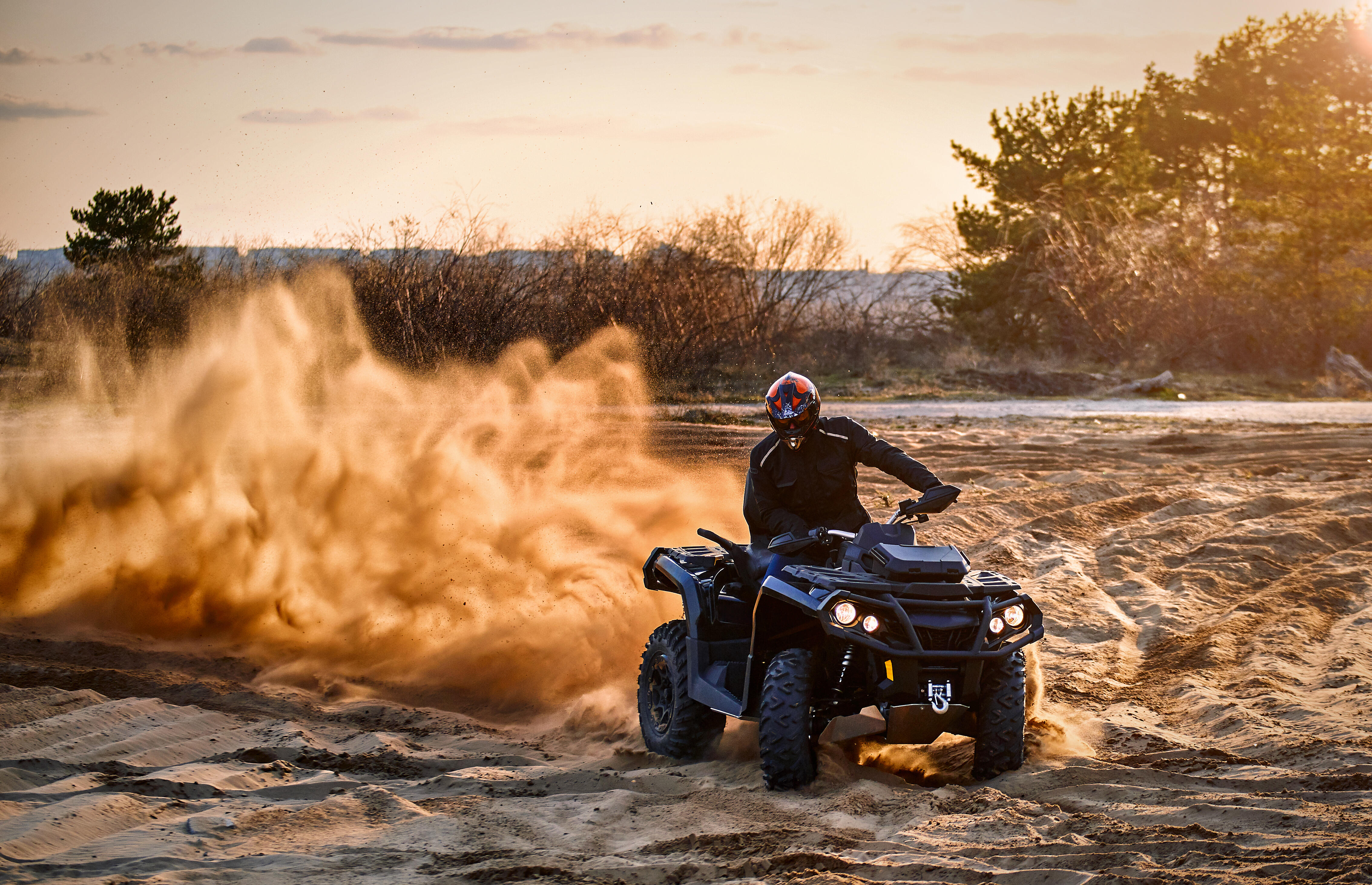 The suspect stole an ATV from a nearby property and took off driving all while handcuffed.