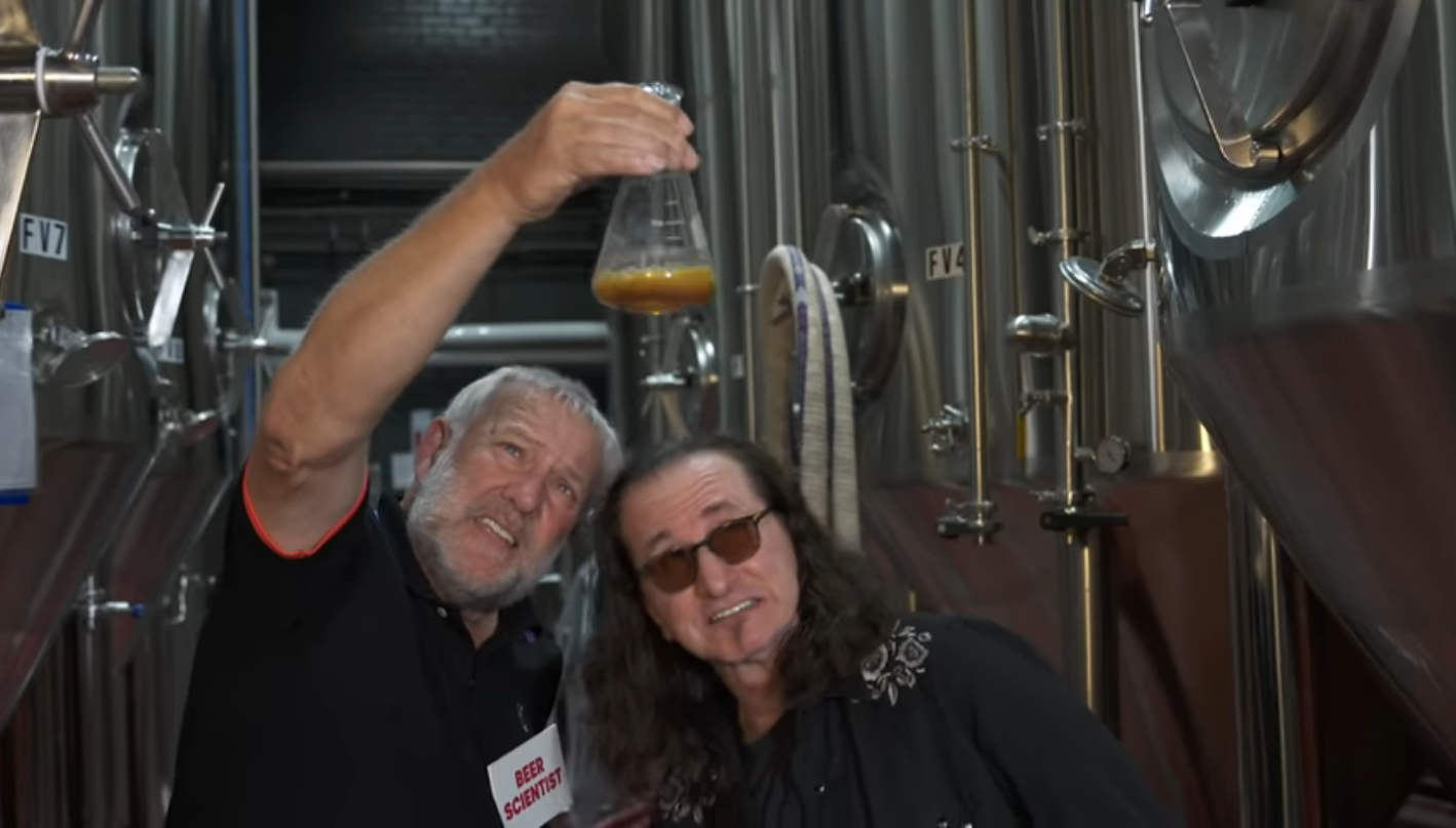 The 30-second clip finds Lifeson and Lee in the heart of the Henderson Brewery, wearing tags identifying them as 'Beer Scientist' (Lifeson) and 'Beer Drinker' (Lee), suggesting there was some plan for a bit.