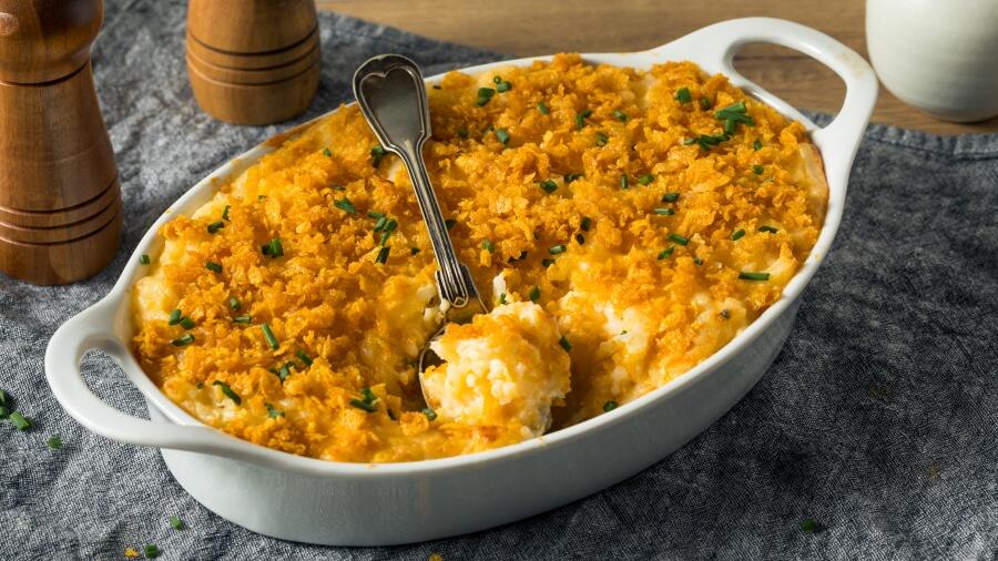 "Funeral potatoes, despite their somber name, are a signature crowd-pleaser in Utah. They are made with canned soup and cheese and topped with crushed corn flakes. They are so named because Mormon families would serve the dish at large gatherings following a funeral."