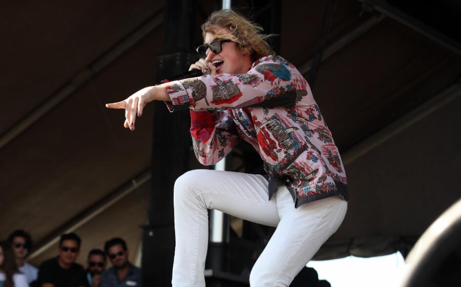 He began a bounce with his track "STILL CHOSE YOU" featuring Mustard. The 18-year-old walked across the stage as he engaged with the crowd, grooving along with them.