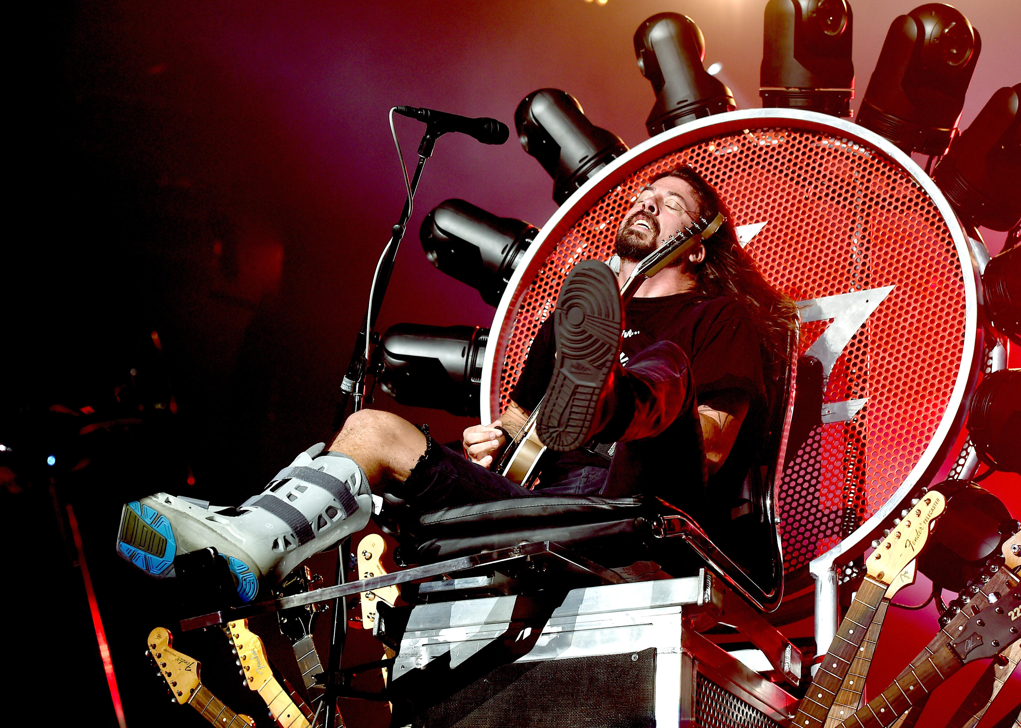 After learning of Wall's heroism — and that Greyhawk had more gigs this month — Grohl lent the bassist the rock throne so he could comfortably continue to perform, despite his injury. Grohl previously lent the throne to Axl Rose in 2016 after the Guns N' Roses singer broke his foot during the band's first reunion show with Slash and Duff McKagan.
