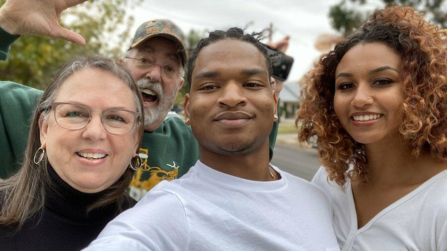 Hinton and his girlfriend, Mikaela, obliged and were welcomed with open arms by Dench and her husband, Lonnie, as photos from the Thanksgiving meetup and screenshots of their interactions were shared thousands of times on social media.