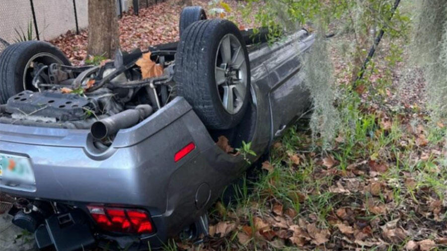 A Florida driver is lucky to have suffered only minor injuries after their car plunged off the top level of a parking garage. Authorities with the Tavares Police Department said the driver, identified as Jewell Sartin, drove his 2006 Ford Mustang convertible off the top deck, crashing into a retention pond 80 feet below.